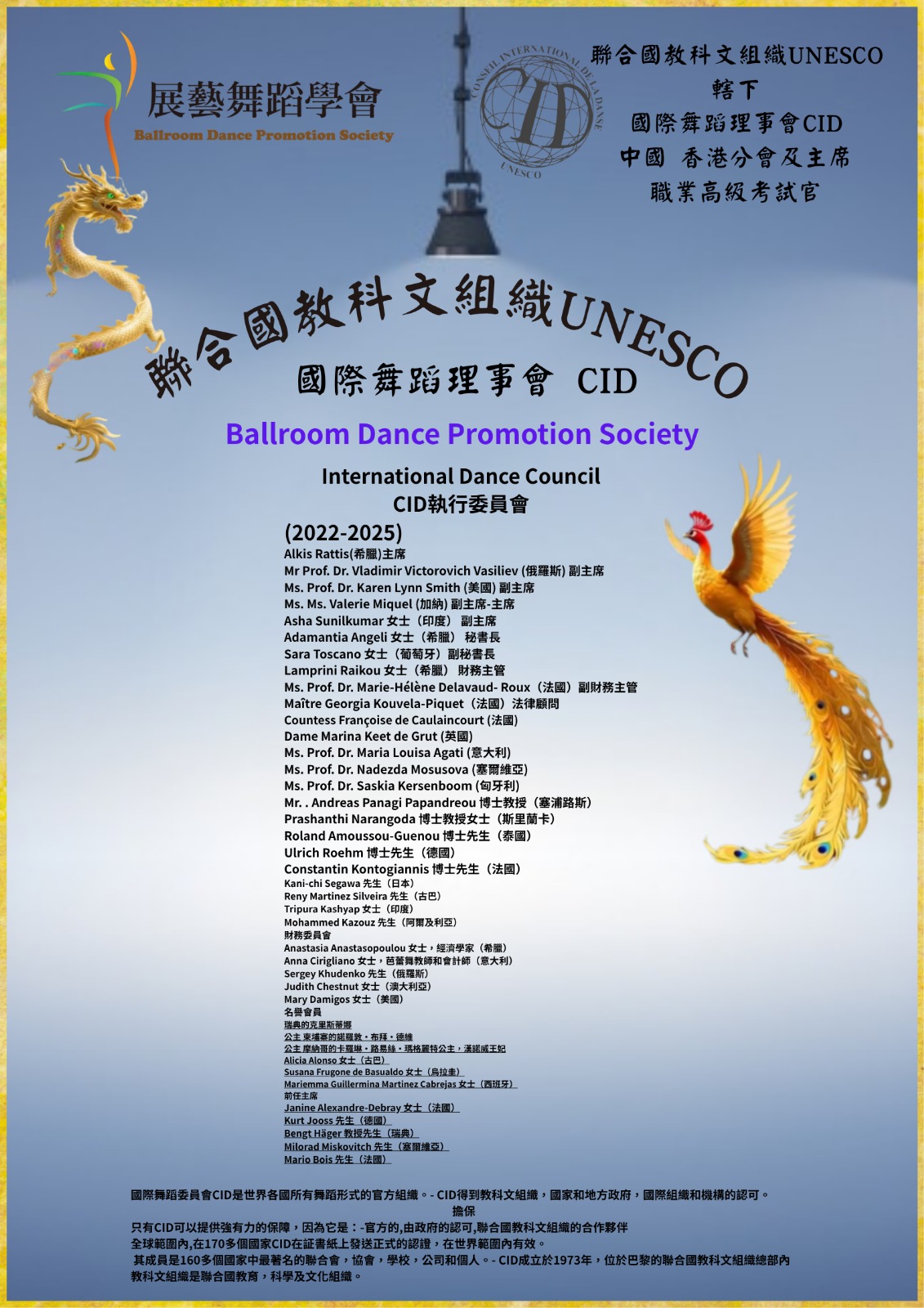 國際舞蹈理事會 CID 展藝舞蹈學會BDPS 國標舞蹈促進協會BDPS 中 香港分會 主辦舞蹈活動