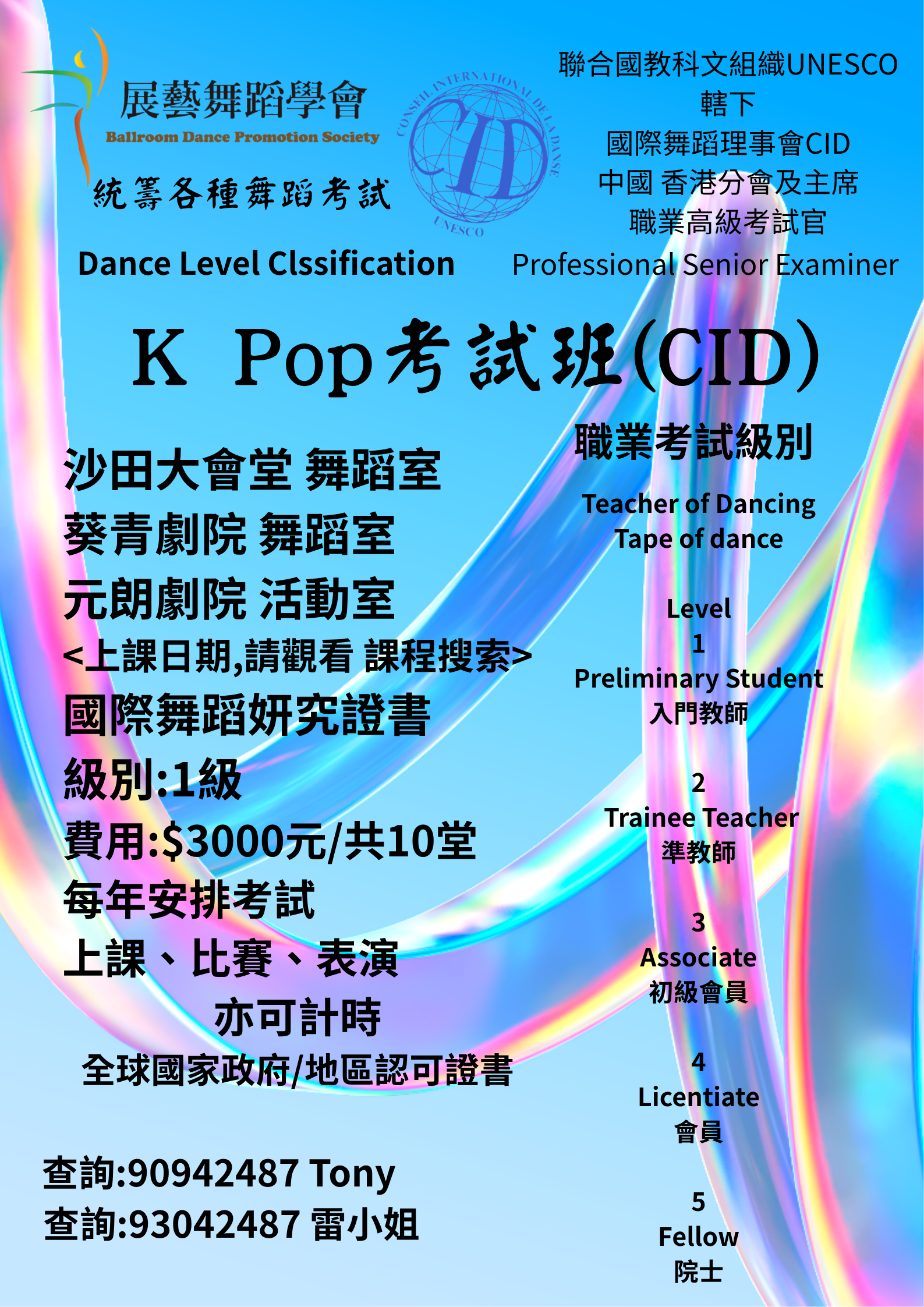 K Pop 國際舞蹈妍究證書課程(CID)1-10級