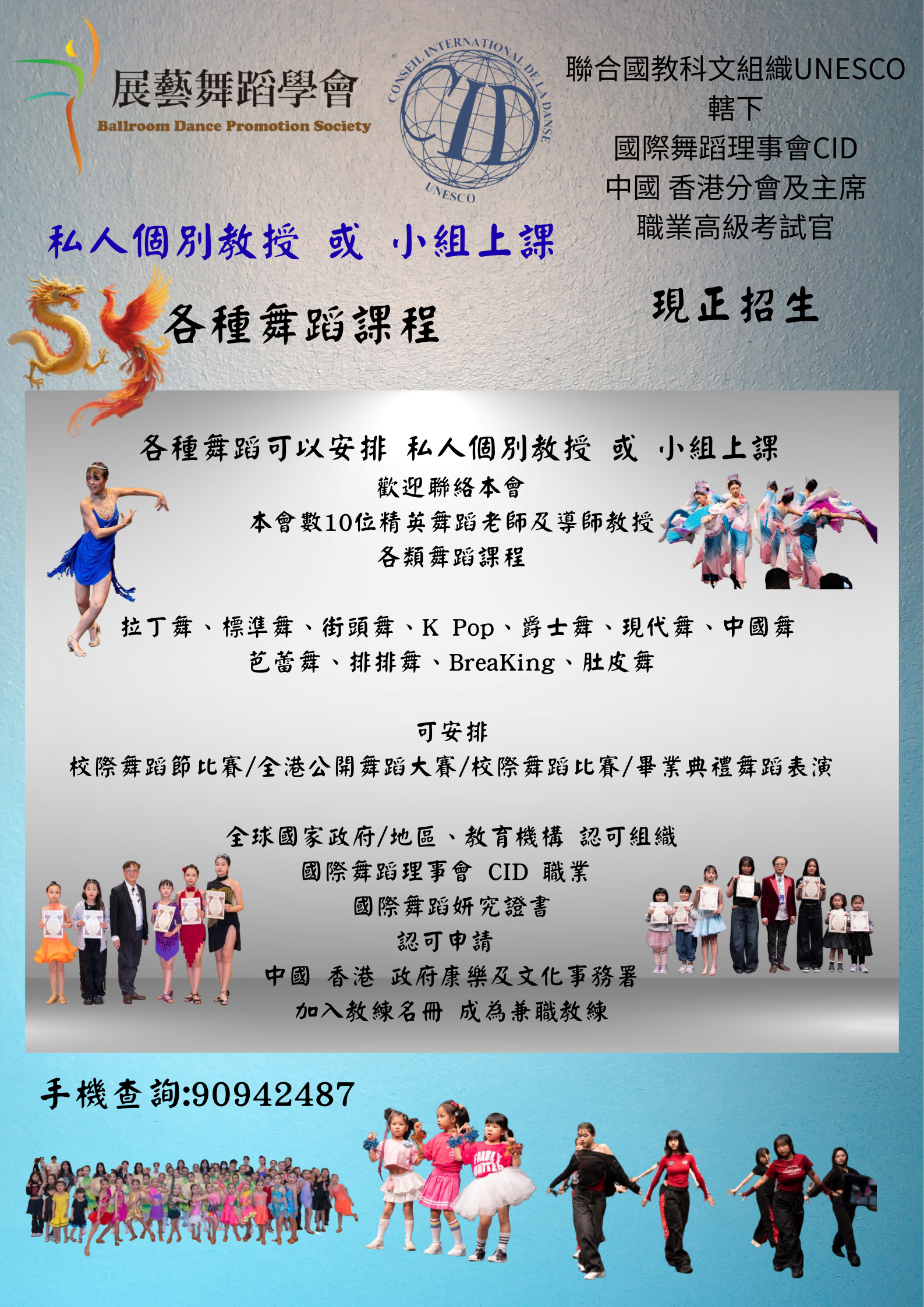 國際舞蹈理事會 CID 展藝舞蹈學會BDPS 國標舞蹈促進協會BDPS 中 香港分會 主辦舞蹈活動
